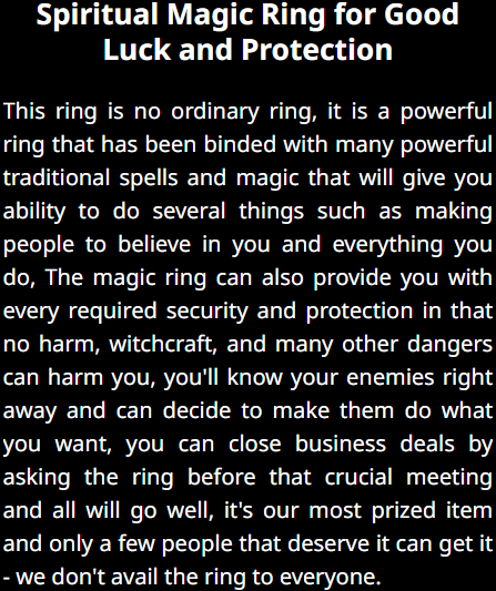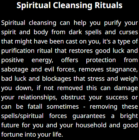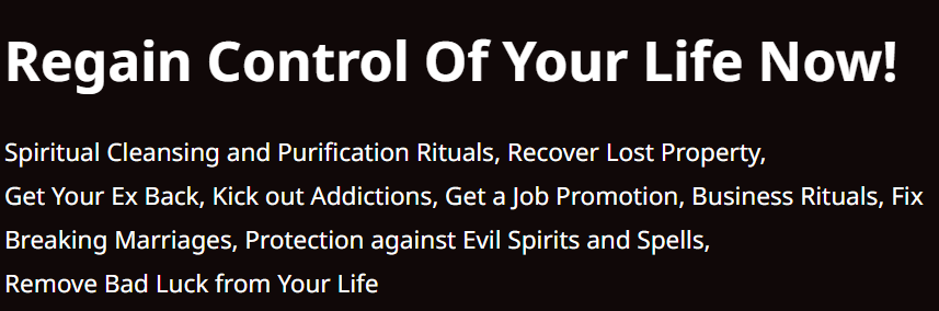 A Specialist African Witch Doctor with knowledge in the use of Black Magic, African Medicinal Herbs and Ritualistic Practices to help rid people of problems ranging from "Spiritual Protection", "Marrital Bond", "Love Spells" to "Persistant illnesses" and Many More Issues...
